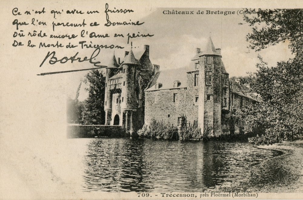 Deux cartes de la série Châteaux de Bretagne reprennent des vers du barde errant consacrés à la légende de la mariée de Trécesson.