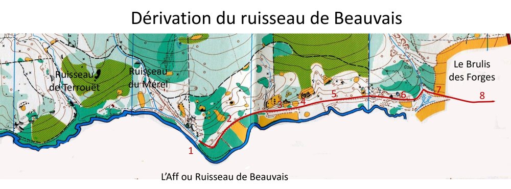 Le réaménagement de la Forge d’Embas est basé sur son approvisionnement par le bassin versant de la rivière de Beauvais (actuellement l’Aff), inutilisé jusqu’alors par l’usine des Forges.