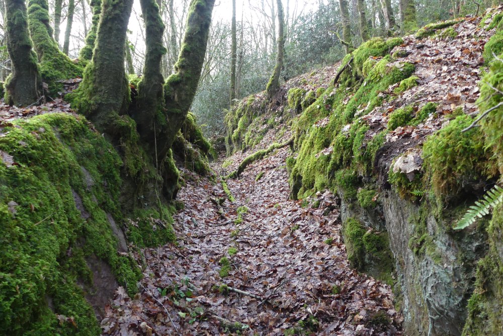 Elle longe les champs avant de bifurquer de façon perpendiculaire, puis longe la route (D773) en direction de la Forge d’Embas.