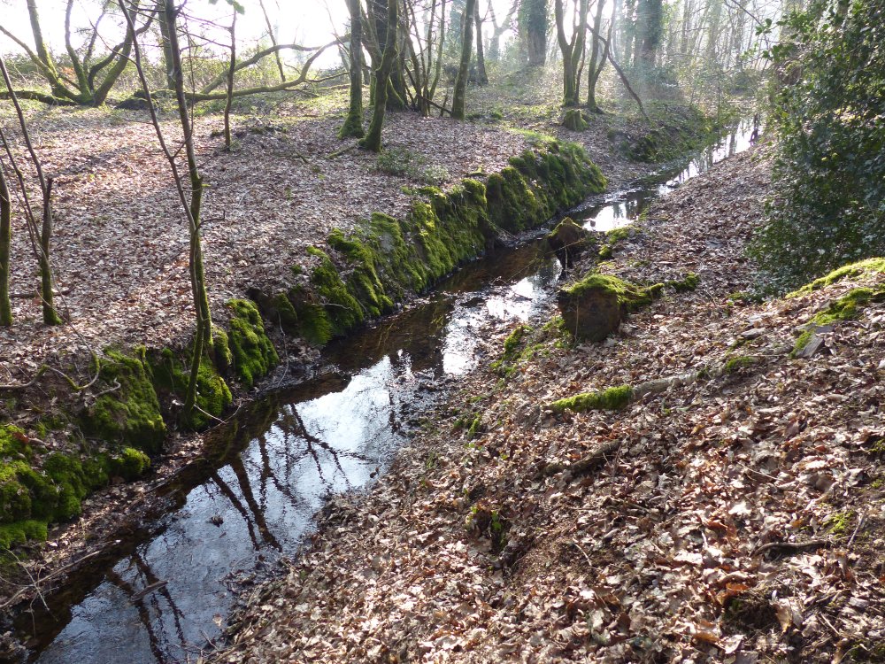 La dérivation descend vers les champs du Brûlis des Forges à l’orée de la forêt.