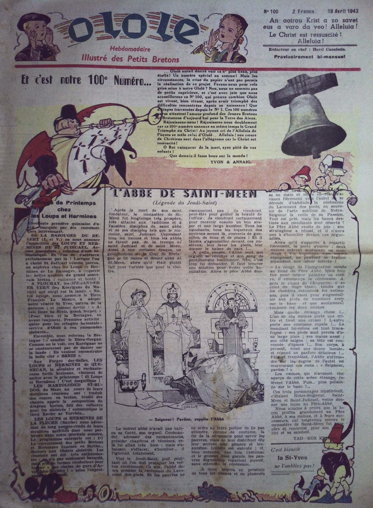 En 1942, Herry Caouissin publie une histoire de Bretagne illustrée par Étienne Le Rallic qui reprend en couleur les grandes lignes de la chronique Une grande et belle histoire, celle de notre Bretagne, publiée dans O Lo Lê à partir de novembre 1940. — CAOUISSIN, Herry et LE RALLIC, Etienne, L’Histoire de ma Bretagne, O Lo Lê, 1942. —