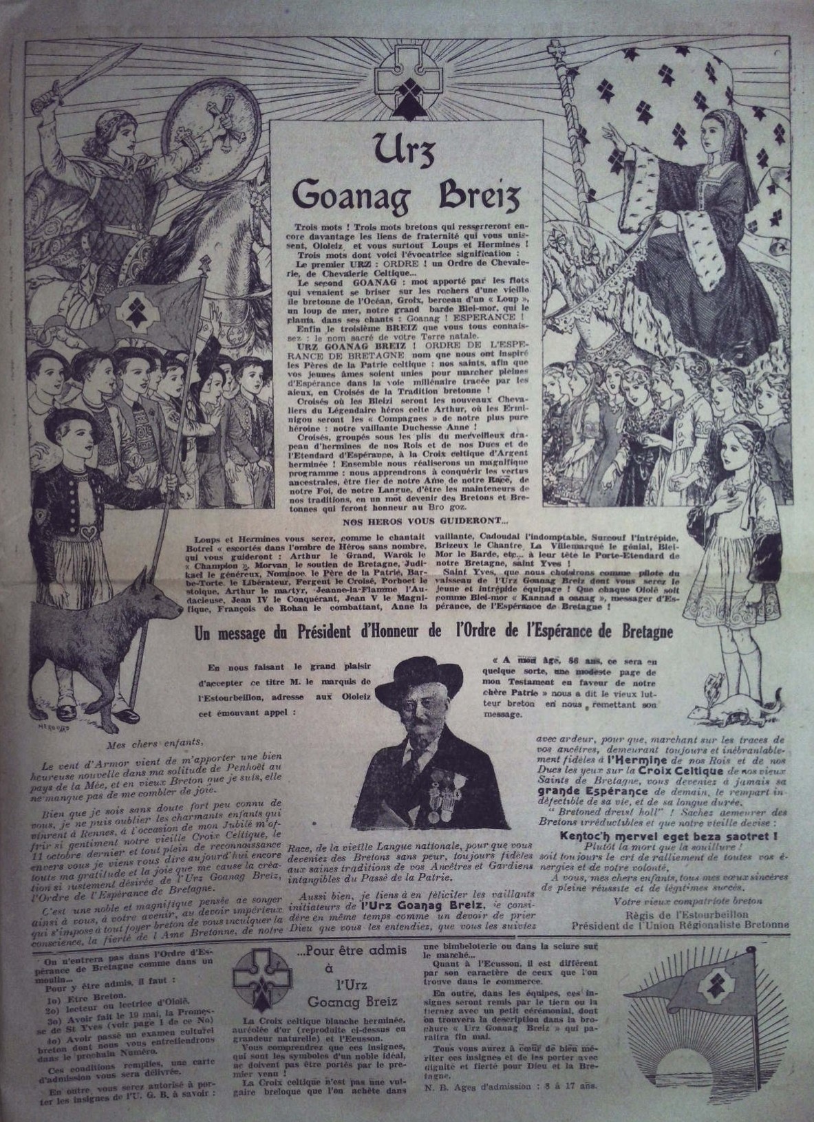 En 1943, le succès de O Lo Lê est tel que Herry Caouissin double la revue d’un mouvement d’enfants : L’Urz Goanag Breiz (Ordre de l’espérance de Bretagne). Ce mouvement dont les jeunes lecteurs peuvent suivre les engagements et les actions dans leur journal est dans l’esprit de son créateur la matrice d’un ordre de chevalerie celtique