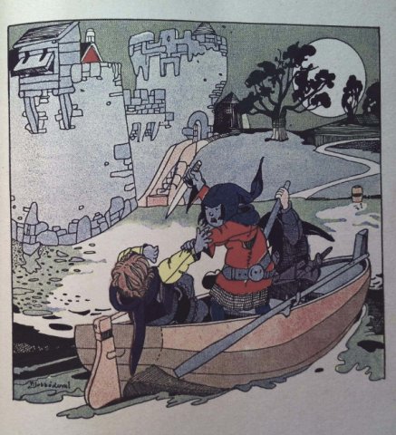 - — THOMEN, Y. et FURIC, R., « Le merveilleux voyage de Matilin à travers les siècles bretons : A la table du Roi Arthur », L’appel d’Ololé, Vol. 5, 1970, p. 16, Voir en ligne. —