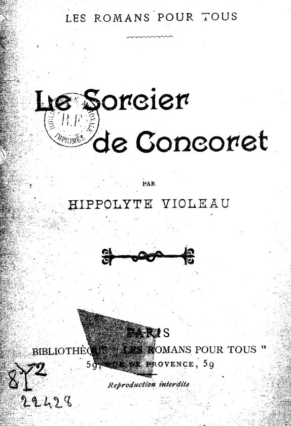 Le Sorcier de Concoret, roman paru à titre posthume en 1905, est une réédition de La Châtelaine de Comper, publié en 1857 dans Nouvelles veillées Bretonnes. — VIOLEAU, Hippolyte, Le Sorcier de Concoret, Paris, Bibliothèque "Les romans pour tous", 1905, 102 p., (« Les romans pour tous »), Voir en ligne. —