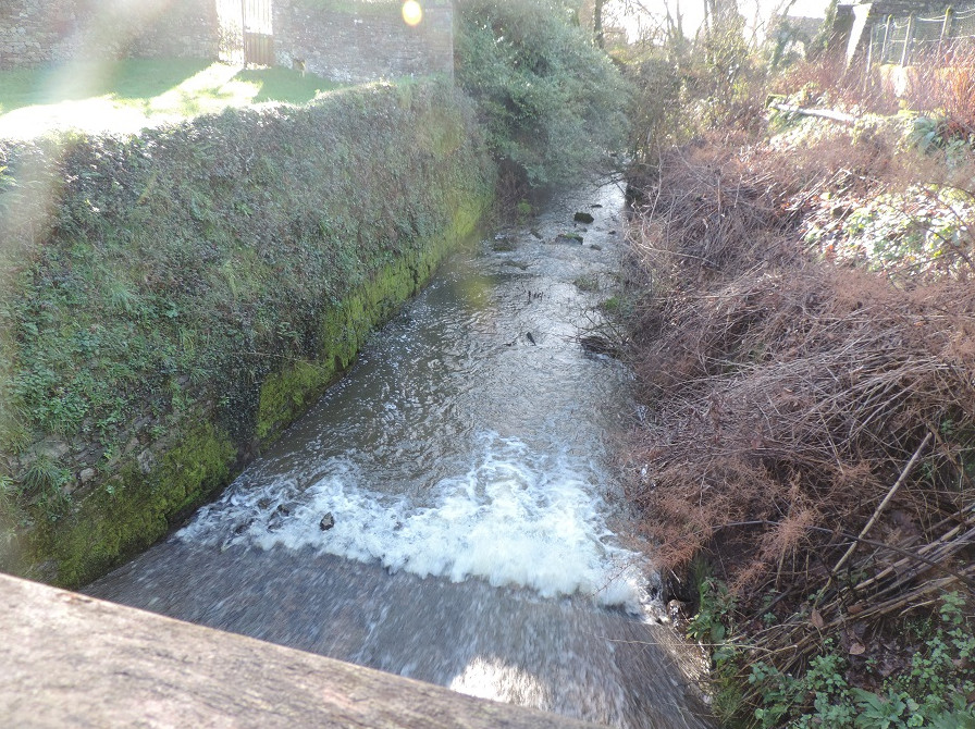 À peu près trois cents mètres après le déversoir, le cours principal est orienté sur un canal d’amenée qui court de façon quasi parallèle au ruisseau du Pas-du-Houx sur un peu plus de quatre cents mètres.