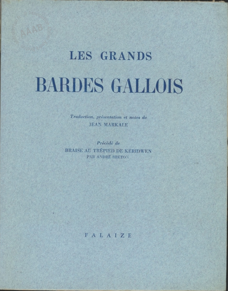 En 1956, il publie Les grands bardes gallois dont la préface, intitulée Braise au trépied de Keridwen, est signée André Breton.