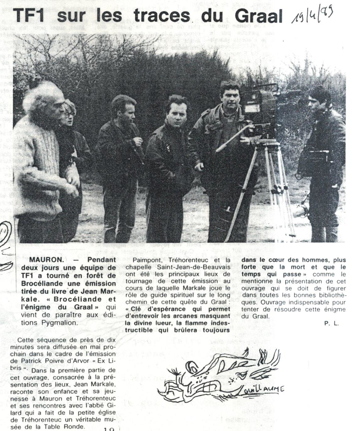 En avril 1989, accompagné d’une équipe de TF1, il réalise un reportage sur la forêt de Brocéliande dans lequel il raconte sa découverte de la forêt et sa rencontre avec l’abbé Gillard. Le reportage est diffusé en mai lors de l’émission « Ex-libris », présentée par Patrick Poivre-d’Arvor. — L., P., « TF1 sur les traces du Graal », Ouest-France, 19 avril, 1989, p. 19, Voir en ligne. —